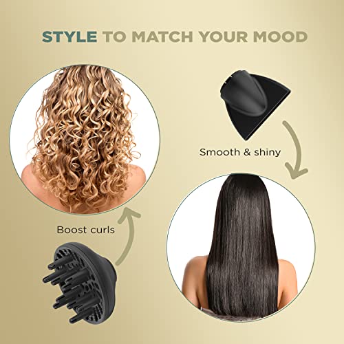 - Styling Control: 3 Heat / 2 Speed settings to customize your own unique style + Cold Shot button to lock style in place! BONUS: Includes 1 concentrator for sleek styles and 1 diffuser to minimize frizz and give those curls a boost.