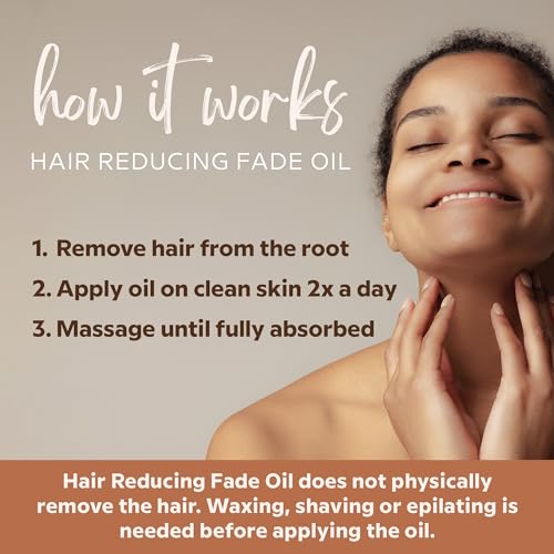 - Versatile Benefits: Beyond hair reduction, our Hair Reducing Spot Fade Oil also targets hyperpigmentation, scarring, and ingrown hairs. Daily use improves hair reduction, delays regrowth, and shrinks hair follicles. Results may vary, but changes can be observed within 2 weeks to 2 months.