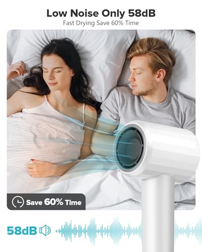 High Speed Ionic Hair Dryer with Diffuser, Professonal Blow Dryer 110,000 RPM Brushless Motor for Fast Drying, 1500W 4Temps /2Speeds, Thermo-Control Hairdryer for Women Home Travel (White)