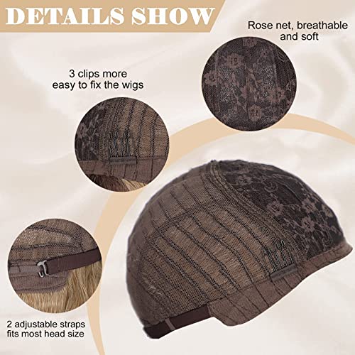 - Comfortable and Breathable Net:The new elastic mesh is breathable and comfortable, not stuffy, and can be used in any season. The 2 adjustable straps make the wig can fit 21.5-22.5 inches head size/shape. The other three clips can hold the wig firmly without falling off easily