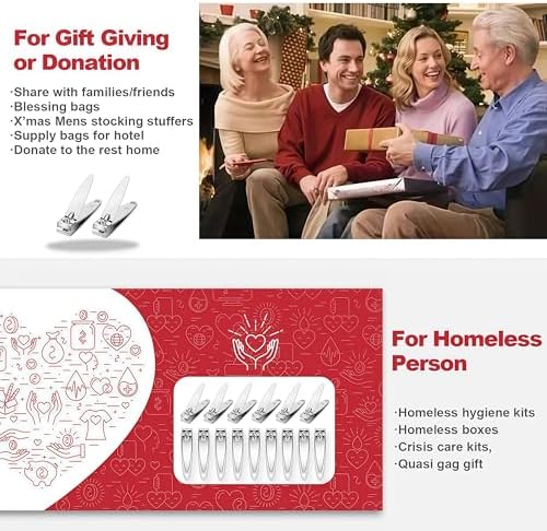 - For Homeless Care Supplies or Donation: You can use these fingernail & toenail clippers in the homeless hygiene kits,homeless boxes,blessing bags,crisis care kits, or other events such as mens stocking stuffers,quasi gag gift,operationchristmas child gift shoeboxes,supply bags for hotel,etc
