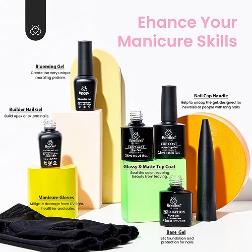- 💕【What You Get】: 36W Nail Lamp*1, Pastel Gel polish 7.5ml*32, Base Coat 7.5ml*1, Top Coat 7.5ml*2 (glossy & matte), Cuticle Oil 7.5ml*1, Blooming Gel*1, Beetles Builder Nail Gel*1, Gold Foil *1, Protective Gloves*2, Nail Cap Handle*1, Cuticle Trimmer*1, Nail Tweezers*1, Cuticle Pusher*1, Nail Clipper*1, Nail File*1, Double-ended Nail Art Pen*1, Nail buffer*1, Nail Separator*2 and Nail Dust Brush *1. You can enjoy doing your nails at home as a gift.