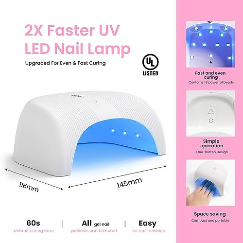 - 💕【Compact Nail Lamp】36W high-power nail dryer for curing all kinds of UV LED gel nail polish and base gel top coat. 18 lamp beads, all-round curing, easy to use and quick-drying, higher power and longer lifespan. (Thumb gets cured alone, other four fingers cured together (press to start, 60 secs default time setting), with base gel, matte, glossy top coat under the full application process.)