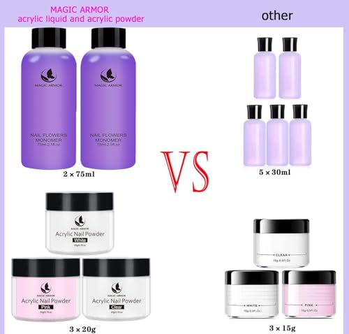 - ๐๐ใHealthy Acrylic Liquid Monomer Set ใ Professional acrylic monomer and acrylic powder have a smell because they are not contain MMA;The Acrylic powder is wonderful to do french nails, acrylic nails, nail carving, nail extensions and nail decoration. The acrylic powder and liquid set can do manicure faster and no need for curing, preventing any skin damage.