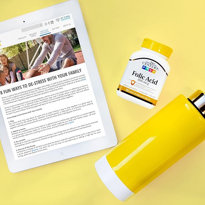 21st Century 800 mcg Folic Acid Tablets, Assorted, 180 Count (Pack of 2)