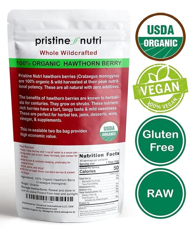 - SUPERFOOD RICH IN AMINO ACIDS, VITAMIN C: Pristine Nutri's whole hawthorn berry organic are rich in amino acids, minerals, pectin, vitamin C, chlorogenic acid, epicatechol, and choline. Hawthorn berry tea offers abundant antioxidants. Organic hawthorn berry whole is a superfood you want to include in your diet for overall well-being.