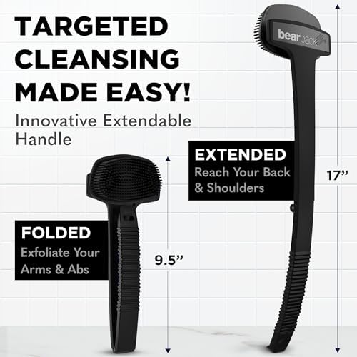Bearback Silicone Body Scrubber with Extendable Handle – Back Scrubber for Shower, Men & Women – Removable Soft Brush, Gentle, Hygienic & Easy to Use