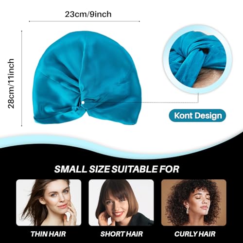 100% Mulberry Silk-Bonnet for Sleeping Women/Men for Curly/Thin/Short/Medium/Braids Hair, Real Silk Wrap Bonnet for Sleeping, Silk Sleep Night Cap for Hair Care, Peacock Blue