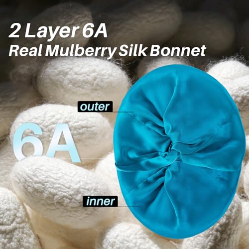- 【Premium Real Silk Bonnet】IN-6A SILK,OUT-6A SILK, 2-layered 100% Mulberry Silk Bonnet for sleeping hair protection. Silk Sleep Night Cap for sleeping reduces hair breakage,nourishes your hair,and keeps your hair style.Perfect Silk Hair Wrap for women with fine hair.