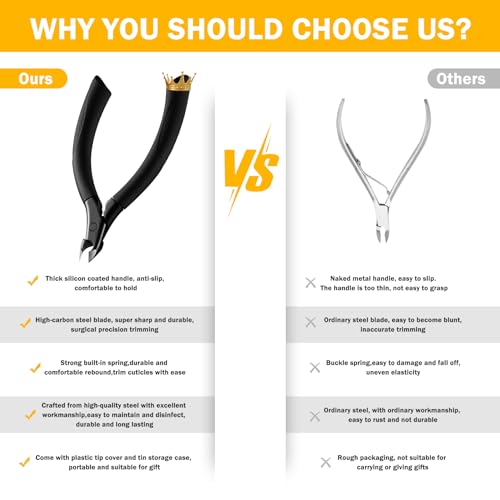 - PERSISTENTLY SHARP & MONEY SAVING - Crafted from high-carbon stainless steel, our cuticle trimmer boasts superior hardness and wear resistance. The high-precision bite of these cuticle nippers ensures accurate and sharp cuts, leaving your nails looking beautifully manicured.