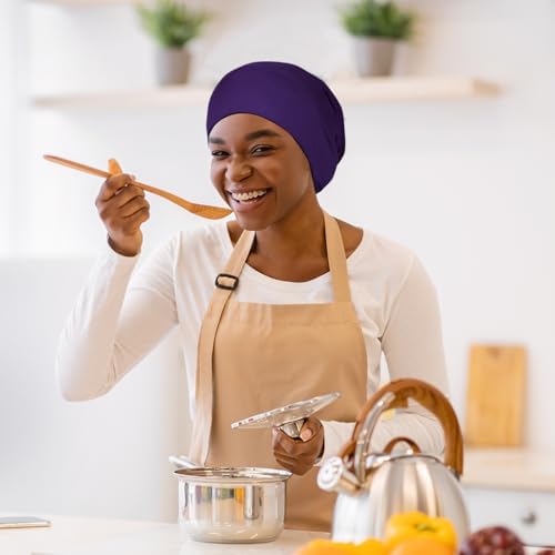 4 Pieces Satin Lined Sleep Bonnet - Adjustable Sleeping Cap Slouchy Beanie Hat for Curly Hair