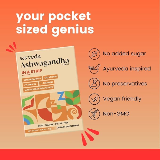 - Product Overview: Experience the power of 365veda KSM-66 Ashwagandha in convenient, tasty berry-flavored strips designed to promote easying, Calm down, and enhance overall well-being for both men and women.