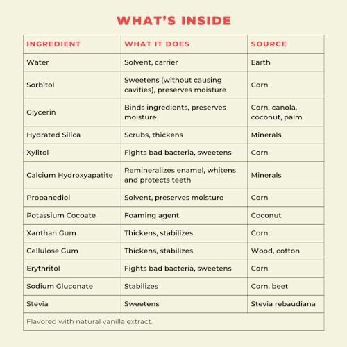 - SAFE FOR BABIES, TODDLERS, AND ADULTS ALIKE: From first tooth to full set, Happy Tooth is a natural toothpaste parents trust and kids actually love. Free from fluoride, SLS, and artificial fillers, our Vanilla Frosting flavor makes brushing a joy for all ages. It supports a balanced oral microbiome and is gentle enough for toddlers while still delivering whitening and remineralizing results adults appreciate. Backed by non-toxic, US-made standards for peace of mind.