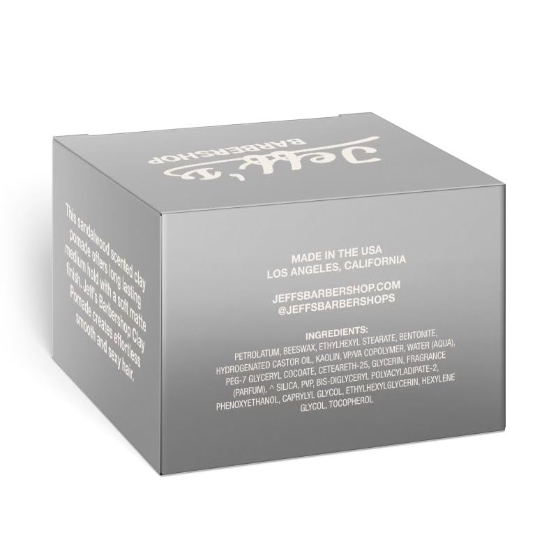 - Medium Hold, All-Day Style - Jeff’s Barbershop clay pomade provides a long lasting, medium hold keeping you looking good all day with endless re-shaping potential without the crunch, stiffness, or rigidity that commonly affects flexibility when styling the hair.