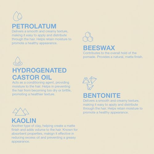 - Smooth Texture - Our clay pomade formula has the perfect balance of natural beeswax and castor oil, two active ingredients that work in harmony to deliver a smooth consistency that is easy to apply and allows for even distribution on your hair.