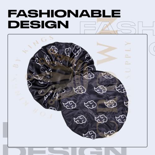 Anime Bonnet with Elastic Soft Band Adjustable Women and Men Silky Bonnets for Sleeping Comfortable Satin Fabric, Black Akat