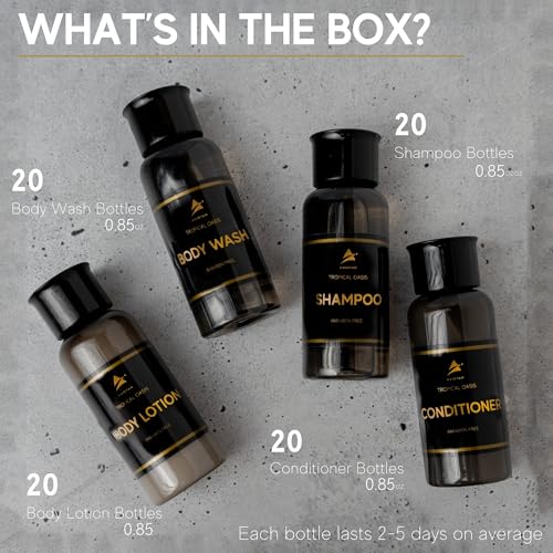 - IDEAL FOR VACATION RENTALS & HOSPITALITY SERVICES: Enhance guest satisfaction with our hotel toiletries bulk set for guests, perfect for hotels, Airbnb essentials for hosts, and VRBO properties. This bulk travel size toiletries set includes everything needed: hotel shampoo, conditioner, body soap, lotion, and hotel soap bars, ensuring your guests enjoy a premium experience from check-in to check-out.