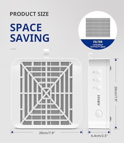 AIRSEE GD3 Powerful Nail Dust Collector, Professional Manicure Pedicure Vacuum for Acrylic Gel Nail Polishing with Reusable Filter, Home & Salon, White