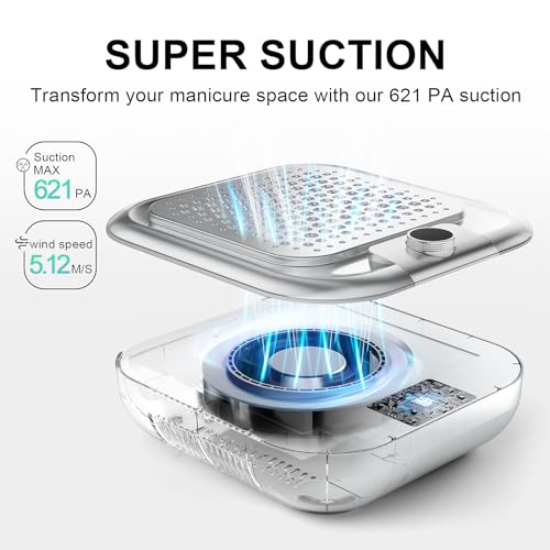 L'UGX Professional Nail Dust Collector for Acrylic Nails with 2 Reusable Filters,10-Gear Powerful Nail Vacuum Drill Duster Collector Extractor for Nail Salon & Home Use,Low Noise