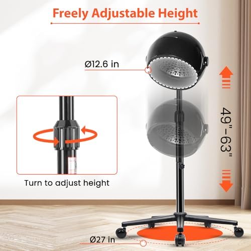 - 【Height Adjustable】This hooded dryer is height adjustable 49'-63' height can be adjusted to suit your needs, Easy to dismantle and assemble, convenient to use.