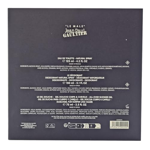 Jean Paul Gaultier Le Male for Men - 3 Pc Gift Set 4.2oz EDT Spray, 2.5oz Shower Gel, 5.1oz Deodorant Spray