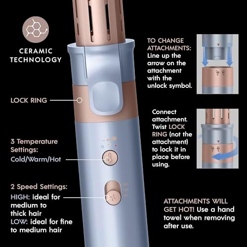 - Curl, Volumize, Smooth, and Dry: The Hot Air Brush with multi-attachments allow for versitility in creating the latest looks from sleek and shiny to classic curls. Attachments include curling wand, 1 1/4' round brush, paddle brush, and drying nozzle.