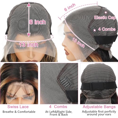 30 Inch 1B/27 13x6 Balayage Highlight Ombre Body Wave Lace Front Wigs Human Hair Honey Blonde Colored Lace Frontal Glueless Wigs Human Hair Pre Plucked for Women with Baby Hair