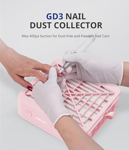 AIRSEE Nail Dust Collector,Compact Vacuum Fan Dust Collector for Salon & Home with Reusable Filter, Powerful Dust Suction Machine Manicure Pedicure Tool for Acrylic Nail Polishing, Pink