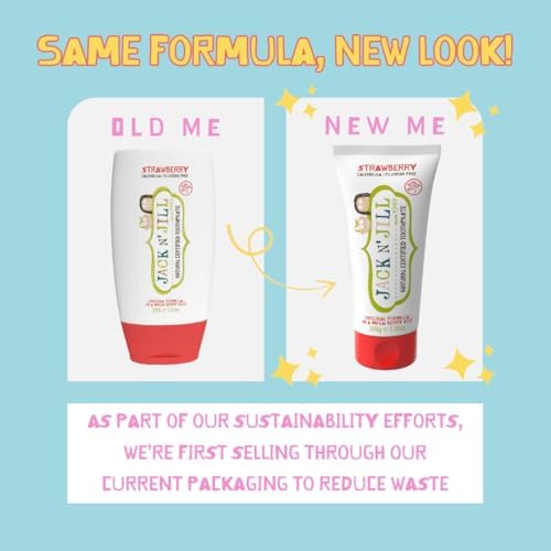 Jack N' Jill Mega Toothpaste 4x More - Natural Toddler Toothpaste for Baby, Kids & Infants 6 Months & Up, Fluoride Free Training Toothpaste for Toddlers 1-3, 40% Xylitol - Strawberry, 7.05 oz (1-Pack)