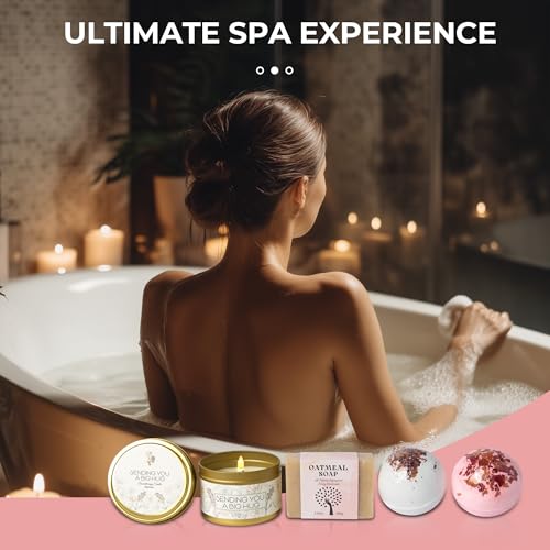 - Exclusive Women Spa Gifts Set:4.2 ounces blue wind chime scented candle, made of pure plant essential oils and 100% natural soy wax, non-toxic, smokeless. Nutritious and soothing oatmeal handmade soap, two exquisite bath bombs (freesia and rose), all release gorgeous and lasting luxury fragrance, will bring her exquisite and luxurious home self-care spa experience.