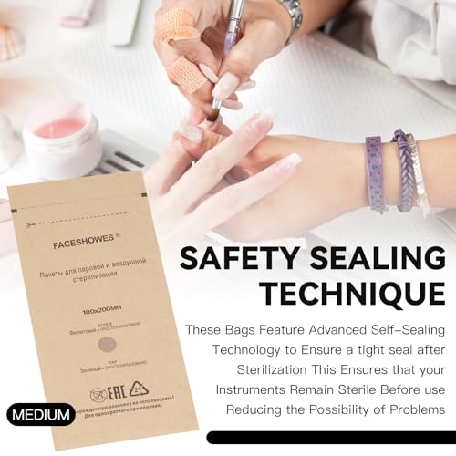 100Pcs Disposable Self-Sealing Sterilizer Pouches for Nail Tool,LXIANGN Dry Heat Autoclave Nail Tools Sterilizer Bags Kraft Paper Cleaning Bags For Dentist Tools and Nail Art Supplies (100mm x 200mm)
