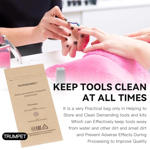 - 【Suitable Size】-The size of this nail cleanning bag is 75*150mm,100*200mm,enough to hold general nail art tools,tattoo machine pens, tattoo grip, tweezers, etc. Each autoclave bag is designed for one-time use, offering a clean and hassle-free solution for tool sterilizing.