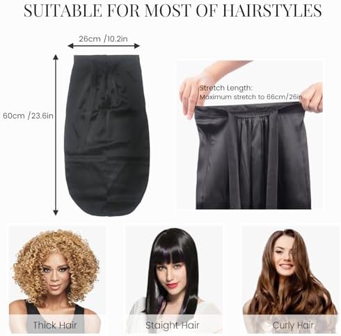 19 Momme 100% Mulberry Silk Cap for Sleeping Women,Adjustable Long Silk Bonnet for Curly Hair Elastic Night Cap