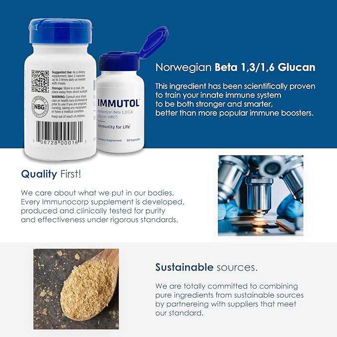 Immutol Immune Support Supplement with 750mg of Beta Glucan 1,3 1,6 - Natural Ingredients, High Potency to Boost Immunity and Overall Wellness, 60 Capsules (120)