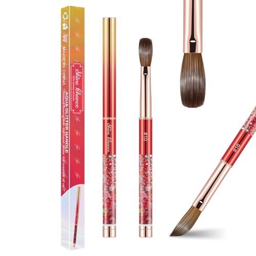 - 【Superior Quality】: Shine Chance Size 12 acrylic nail brush made of 100% pure kolinsky hair, high quality steel handle and brass ferrule holds the brush firmly, durable for long-term use. With good flexibility and unsurpassed acrylic powder-carrying performance, perfect for acrylic application. Comes in a plastic tube, convenient for storage and take out for a trip.
