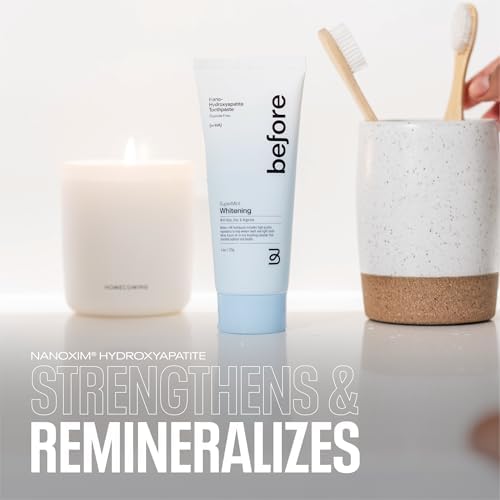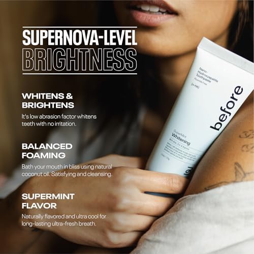 Before | Fluoride Free n-HA Whitening Toothpaste | Natural, Nano Hydroxyapatite Helps Strengthen Teeth & Remineralize Enamel for Oral Health, Lasting Mint Flavor, Made in The USA — 4.4oz