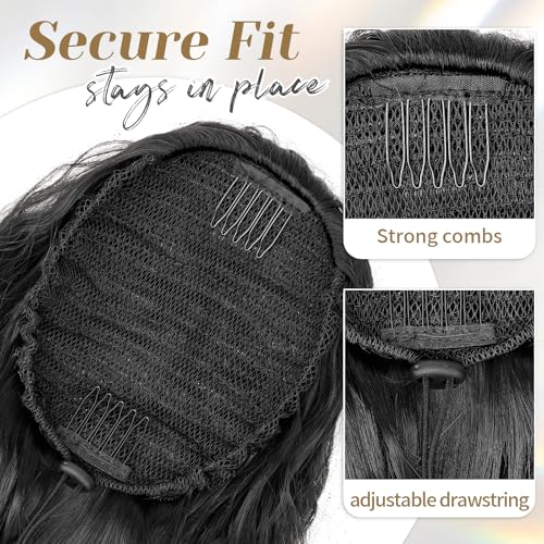 - [Drawstring ponytail easy to wear] :The drawstring ponytail can be quickly worn in just three steps, saving time and money. the pony tails - two combs and high elastic drawstring design can perfectly avoid the awkward situation of falling off, making you beautiful all day.