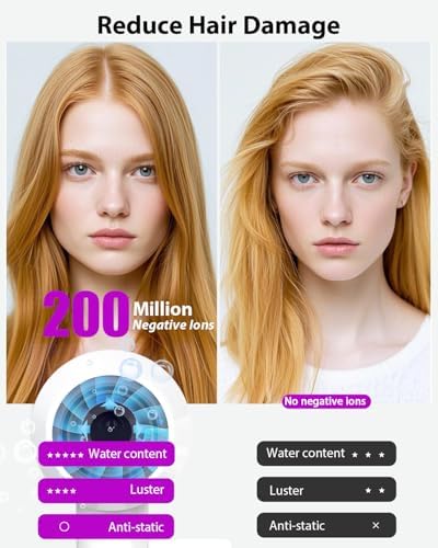 - ✅[Advanced Ionic Care for Silky-Smooth Hair] With the power of 200 million negative ions to deeply nourish your hair, repairing and protecting the cuticle layer for a healthier, shinier look. Say goodbye to frizz and tangles. Our hairdryer ha innovative technology attracts moisture molecules from the air, forming a protective layer on your hair to lock in hydration and enhance smoothness. With every use, your hair becomes silkier, softer and easier to manage—effortless great hair days every day