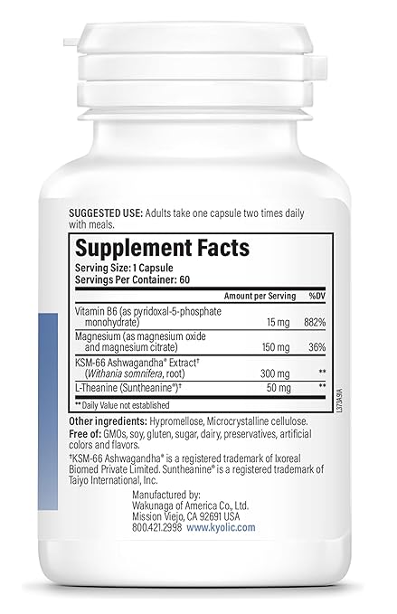 - Kyolic Specialty Series Calm Mood is specifically designed to promote stress relief, relaxation and an elevated mood.* Formulated with a synergistic blend of Ashwagandha, L-Theanine, Magnesium and Vitamin B6.