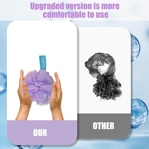 - PREMIUM QUALITY: Skin care bath sponges shower scrunchy mesh loofah puff, durable with excellent process. Gentle cleanse for soap making, quick dry and reusable.