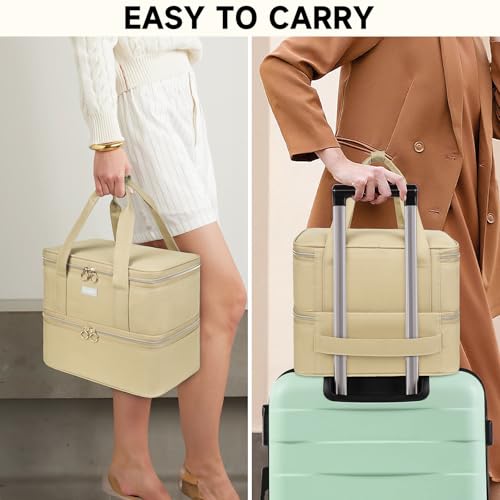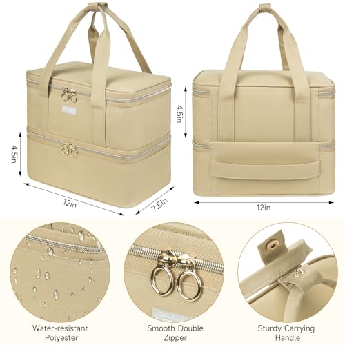 LEFORZ Nail Care Organizer, Double-Layer Nail Polish Organizer and Storage, Khaki, 40 Bottles (15ml-0.5 fl.oz) and Nail Lamp, Portable Nail Polish Holder