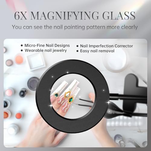 - Professional Dual-Light UV Nail Lamp for Gel X – with 6X Magnifier:Experience salon-perfect results with our UV lamp for gel x nails featuring dual-light technology: Combined with u v nail lamp for gel x and LED lightand 6X Magnifier. The built-in magnifier provides crystal-clear visibility for nail construction and painting, while the flash cure lamp technology can fast curing. Perfect for gel x uv lamp users seeking precision and efficiency