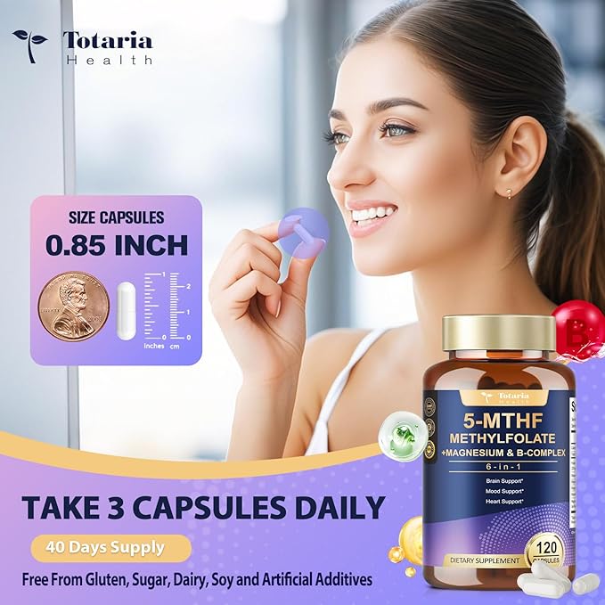 - 【Advanced Metabolic & Cardiovascular Support】 Precision-formulated to support healthy homocysteine metabolism through methyl-B12 synergy, while supporting cellular renewal efficiency via bioactive 5-MTHF utilization. Totaria's L Methylfolate activates essential enzyme pathways that support systemic metabolic balance and cardiovascular function maintenance.