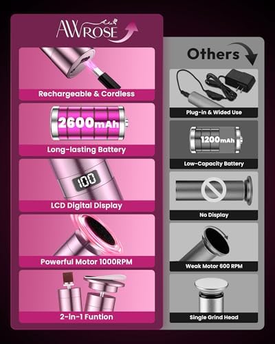 - 🔋【Rechargeable & Cordless】Say goodbye to tangled cords and limited mobility! Our sleek cordless callus remover for feet is recharegable and features high-capacity 2600mAh, with an LCD display for real-time power monitoring. Enjoy complete freedom with cordless operation - from tub/shower to beach chair, from bed to backyard, no more tripping over messy cords!