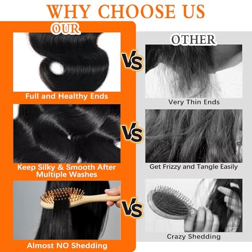 - Premium Quality Hair: Our body wave bundles Crafted from 100% Brazilian Virgin Human Hair, 12A Human Hair Bundles Body Wave Weave 3 Bundles Human Hair, The hair is completely unprocessed and chemical-free, preserving its natural shine and strength. Perfect for achieving a flawless, full-bodied look.