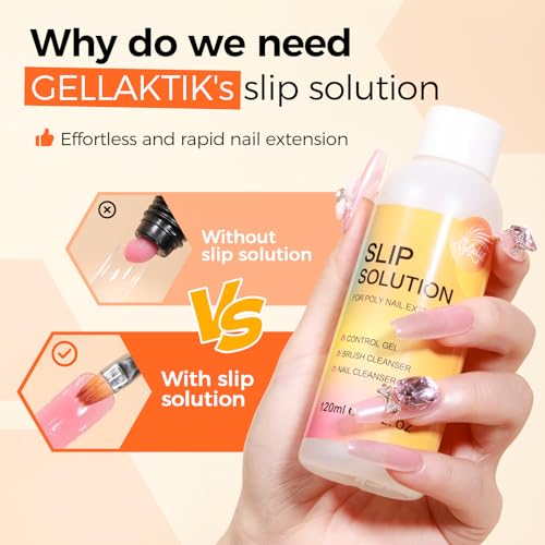 - 【Slip Solution for Poly Nail Gel】Dip your brush in slip solution to prevent poly nail gel from sticking to the brush or other nail tools, ensuring smooth application and shaping on your nails or dual forms. This slip solution also effectively removes the sticky residue from cured gel, making it ideal for both gel extension and cleanup. Additionally, it helps wipe away surface impurities, excess gel, and oils for a flawless finish.