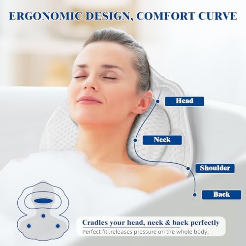 Bath Pillows for Tub, Afitton Luxury Bath Pillow Bathtub Pillow Headrest Neck and Back Support - with 4D Air Mesh Fabric & 6 Powerful Suction Cups, Ergonomic Bath Accessories Spa Gifts for Women Men