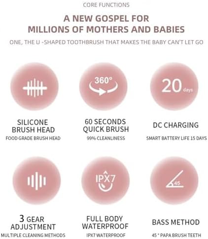- [U-shaped toothbrush 4 Brush Heads] : Childrens electric toothbrushes Our kids electric toothbrush is made of food grade soft silicone material,specially designed for kids gums and sensitive teeth.Includes 4 brush heads: 2 food grade silicone U-shaped brush heads and 2 soft brush heads. The soft toothbrush head that surrounds the teeth 360 degrees provides a comfortable brushing feeling, more efficient and deep cleaning of teeth, and can also help children develop healthy brushing habits.