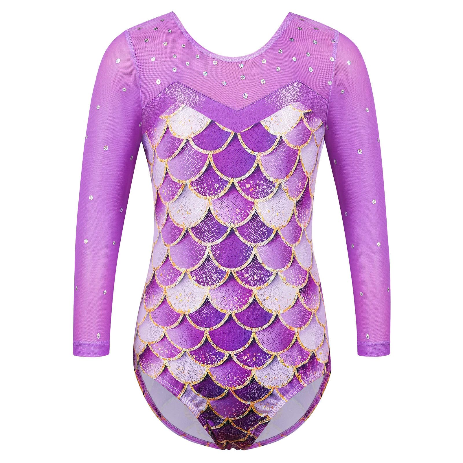 BAOHULU Gymnastics Leotard for Girls Shiny Sequin Sleeve Practice Dancewear B346_PurpleScale_5A