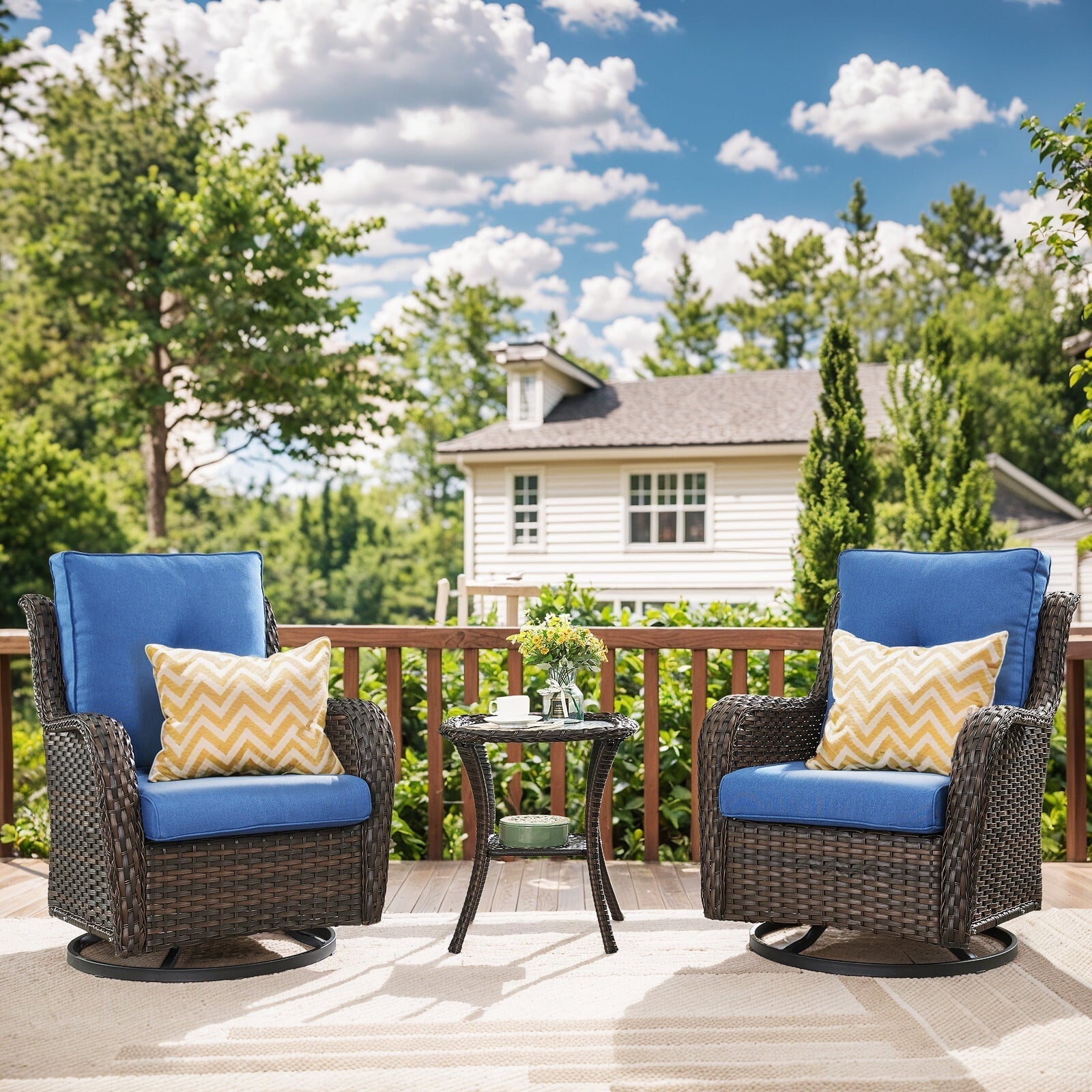 Bellefurn Outdoor Swivel Rocker Chairs Set of 2,Patio Wicker Swivel Glider Chairs Patio Rocking Chairs with Side Table Patio Furniture Set for Porch Deck Backyard Garden